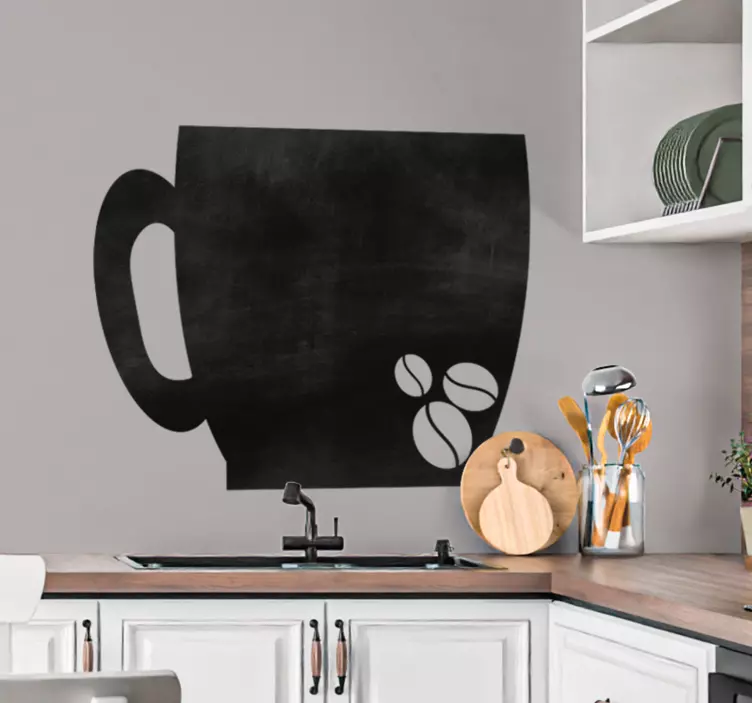 Transform your kitchen into a cozy coffee haven with our Chalkboard sticker coffee mug outline. Featuring an adorable design of a coffee cup surrounded by coffee beans and customizable text for your menu, this sticker adds a personal touch to your culinary space. Perfect for coffee lovers, it brings warmth and charm to any room in your home!