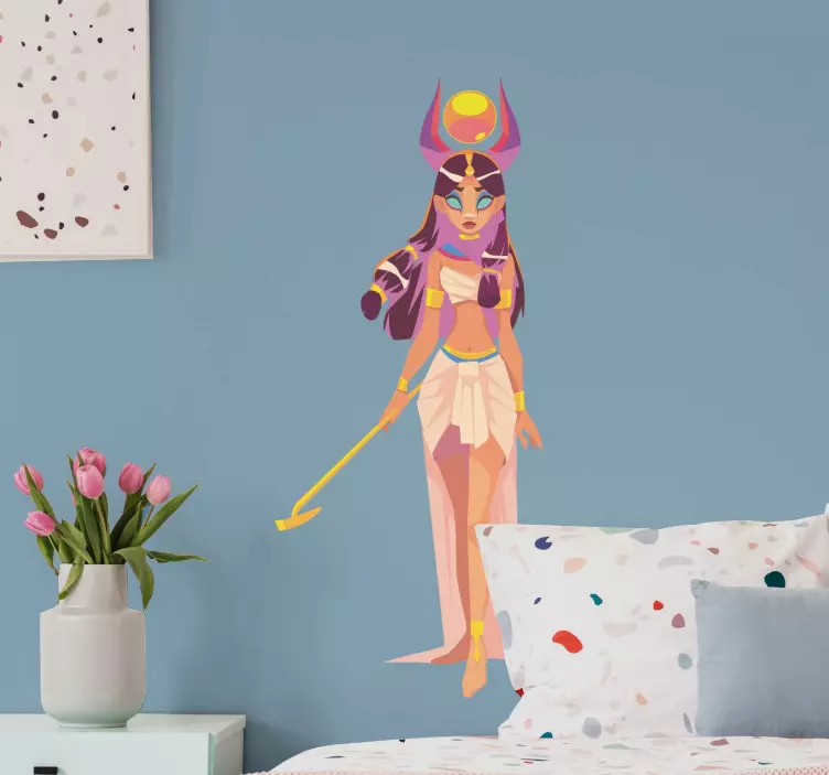 Introducing our vibrant Character sticker of mythical egyptian figure, beautifully designed to capture the essence of ancient Egyptian mythology! This whimsical goddess character embodies a colorful and fantastical cartoon representation of a female character that brings the enchanting world of ancient culture to life. With its striking imagery and playful design, this sticker is perfect for adding a splash of creativity to any space.
