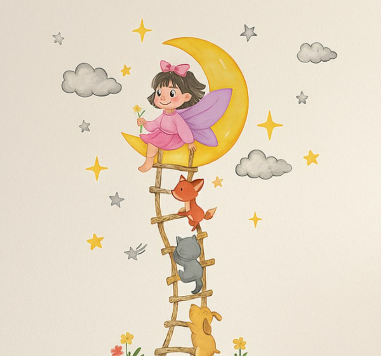 Installing the Childrens' wall stickers moon girl wall decal childrens' wall stickers is a breeze! Simply clean the surface where you want to apply the decal, peel off the backing, and stick it onto the wall, ensuring a smooth application. For a more professional finish, consider using heavy-duty adhesive Velcro or other installation methods that suit your needs.