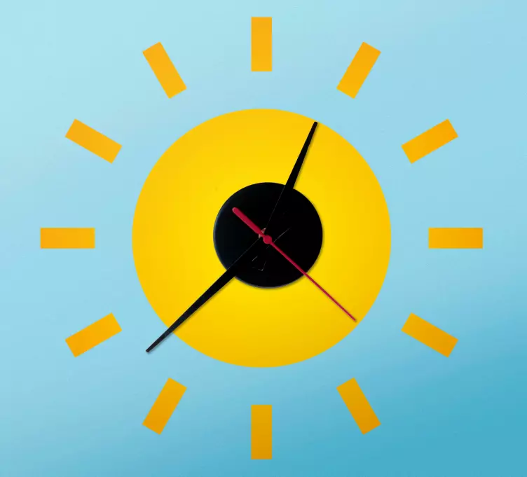 Transform your space with our stunning Clock wall sticker yellow sun design! This stylish and modern graphic features a radiant sun that not only adds a splash of vibrant yellow but also serves a practical purpose, allowing you to keep track of time effortlessly. The design is perfect for brightening up any wall, making it a delightful addition to your home decor!