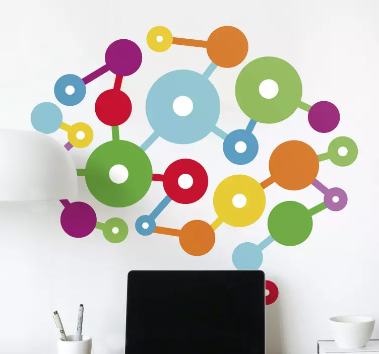 Introducing our stunning Colorful circular links geometric wall sticker! This vibrant design features a captivating blend of abstract shapes that resemble neurons and brain patterns, creating a modern and creative atmosphere in any space. The colorful elements will enliven your walls, making them pop with personality and style!