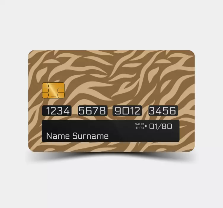 Introducing the Credit card sticker wild pattern design, a unique blend of artistic flair and practicality! This sticker features an eye-catching graphic design showcasing a stunning tiger and zebra skin animal print in rich brown tones. It transforms your credit card into a stylish accessory with an abstract touch that reflects your personality.