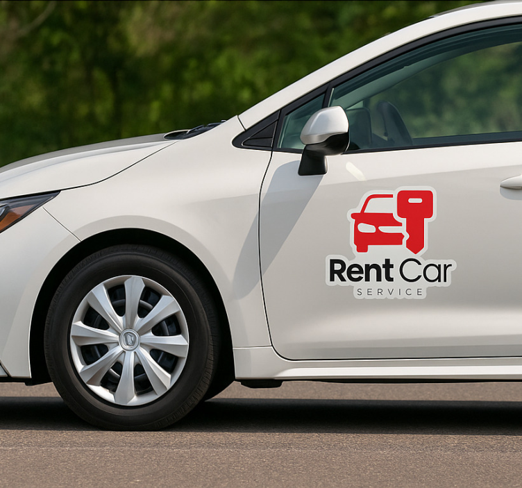 Reference: A54858Introducing our Custom sticker rent car logo design, a visually striking and adaptable product perfect for enhancing the look of any vehicle! Our design features a vibrant satin finish that minimizes reflections, ensuring an eye-catching presentation both indoors and outdoors. With excellent color intensity and a built-in adhesive, this custom sticker is not only durable but also provides a seamless application experience. Crafted with a robust 80-micron thickness, it boasts a lifespan of 8-10 years, making it an ideal choice for car rentals and personal use alike.