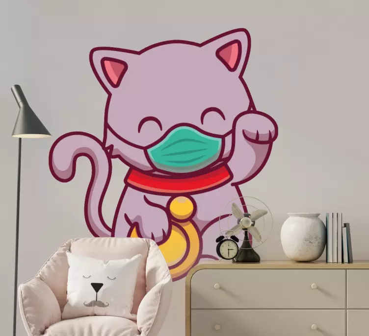 Reference: A30996Cute lucky cat wearing mask dog decal