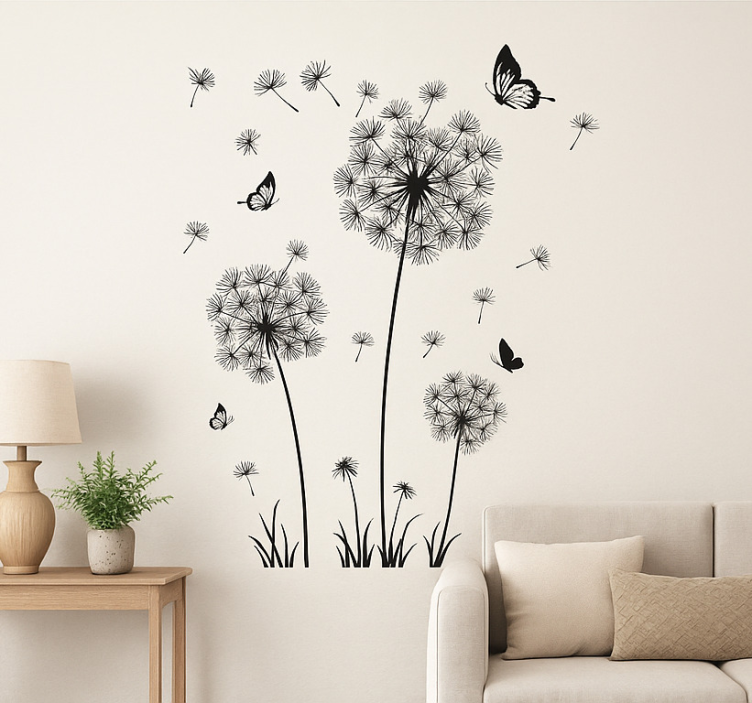 Dandelion butterfly wall decal for living room