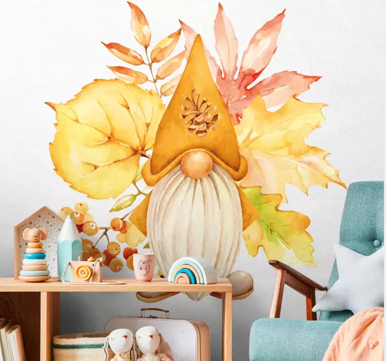 Transform your home into a cozy autumn wonderland with our Decoration wall sticker autumn gnome design. This enchanting design features delightful gnomes surrounded by vibrant watercolor leaves, capturing the essence of fall and nature. Perfect for adding a touch of warmth and charm to your living space, this wall sticker embraces the beauty of the autumn season!