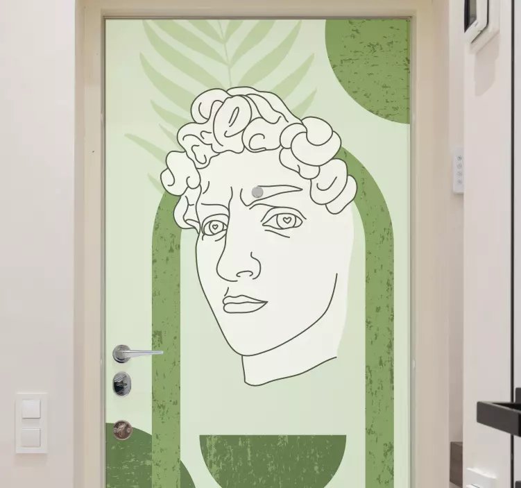 Transform your space with our Door sticker contemporary face art design, featuring a stunning representation of the David statue through minimalist line art. This modern design incorporates green tones and abstract shapes, creating a striking visual that adds character to any door. With its unique graphic design, this adhesive is perfect for those looking to elevate their home decor!