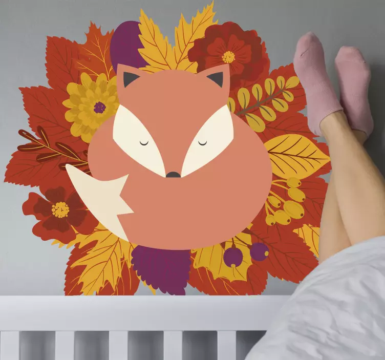 Transform your space with our Farm animal wall decal fox with leaves, a stunning design that captures the beauty of autumn. Featuring a sleepy fox nestled among vibrant fall leaves and colorful flowers, this wall decal brings a touch of wildlife into your home. The enchanting combination of nature and artistry creates a warm, inviting atmosphere, perfect for any room!
