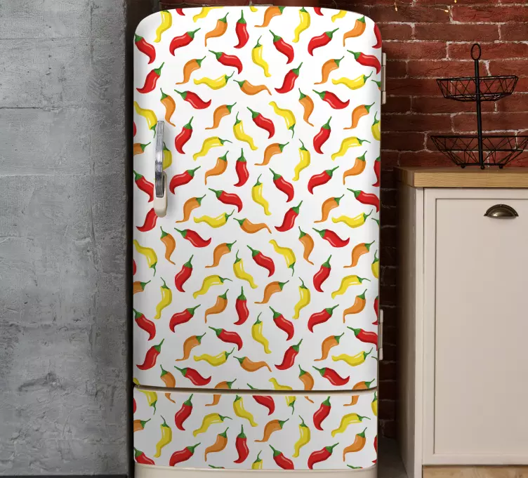 Brighten up your kitchen with our Fridge sticker colorful chili peppers! This vibrant design features an array of colorful chili peppers that create a captivating pattern perfect for any fridge. The combination of lively colors and food-themed images brings a delightful touch to your culinary space, making it not just functional but also artistic!