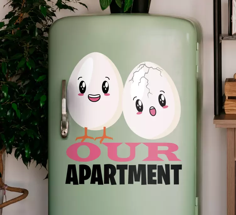 Introducing our delightful Fridge sticker cute egg couple, a whimsical addition to your kitchen décor! This charming design features cartoon characters of a happy, laughing egg couple that instantly adds a playful touch to your apartment. With its vibrant colors and humorous text, this sticker brings joy to your fridge while making a fun statement!