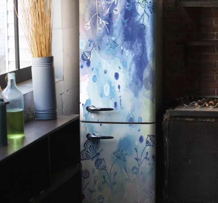 Brighten up your kitchen with our stunning Fridge sticker floral butterfly design! This captivating design features a beautiful blue watercolor splash, combining intricate floral drawings and vibrant butterflies that resonate with the beauty of nature. Each glance at your refrigerator will remind you of the colorful elegance this design brings, transforming an everyday appliance into a work of art!