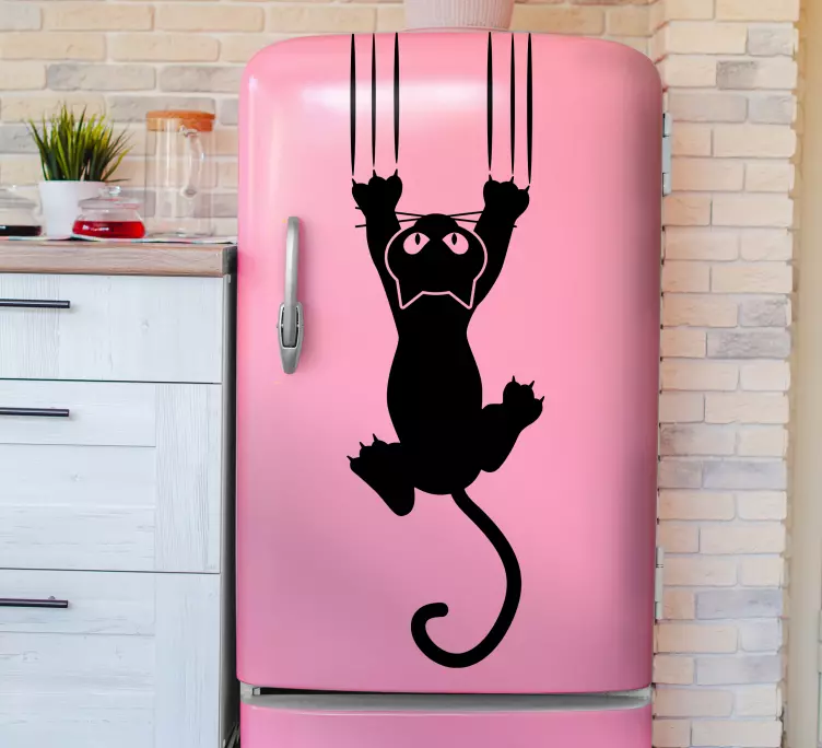 Fridge sticker playful cat climbing
