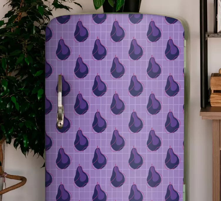 The Fridge sticker purple pear pattern showcases a delightful design featuring whimsical doodles of vibrant purple pears. This modern fruit pattern breathes life into your refrigerator, making it a charming focal point in your kitchen. With its eye-catching doodles and fruity theme, this sticker transforms an ordinary appliance into a stylish statement piece.