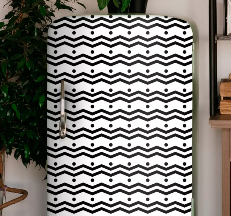 Transform your kitchen with our Fridge sticker zigzag pattern overlay, featuring a striking black and white design that showcases bold geometric lines. This modern and monochrome pattern adds a touch of elegance and style to your fridge, making it a perfect home decor choice. The zigzag lines create an eye-catching overlay that enhances your space while maintaining a clean and contemporary look.