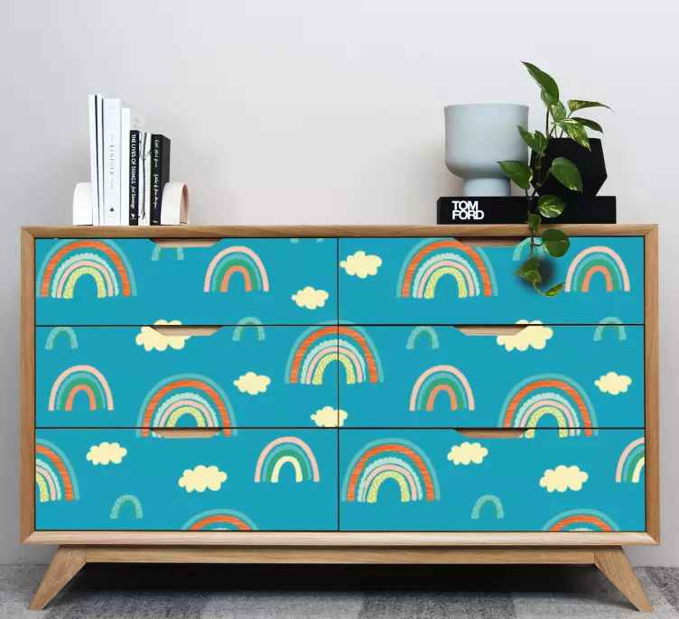 Brighten up your space with our Furniture sticker colorful rainbow patterns! This delightful design features vibrant rainbows and fluffy clouds, creating a playful and whimsical atmosphere perfect for any room. The colorful patterns will instantly transform your furniture, adding a touch of joy and creativity to your home decor.