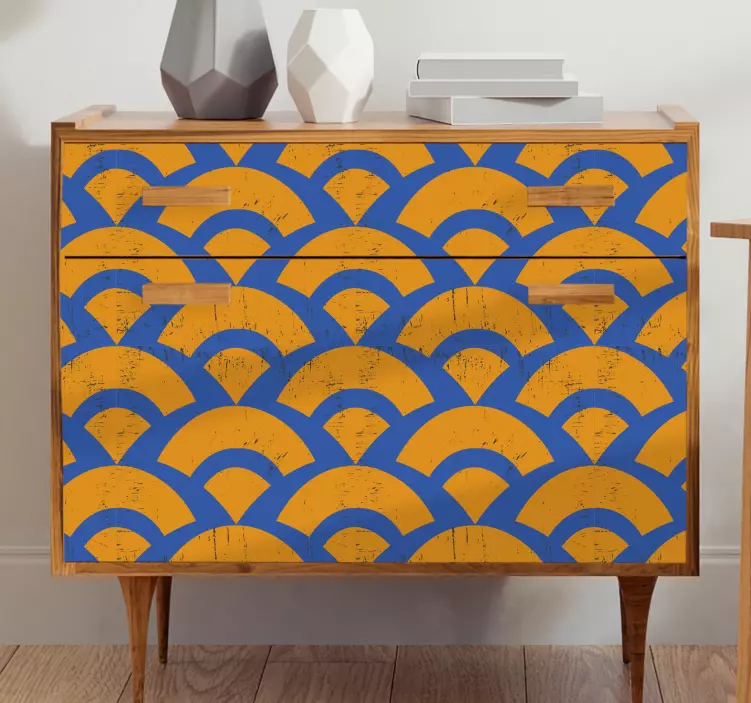Transform your living space with our Furniture sticker wave pattern design, a delightful blend of geometric shapes and minimalist aesthetics. This unique design features flowing waves adorned with bows in vibrant shades of blue and orange, creating an abstract yet harmonious look that effortlessly enhances any piece of furniture.