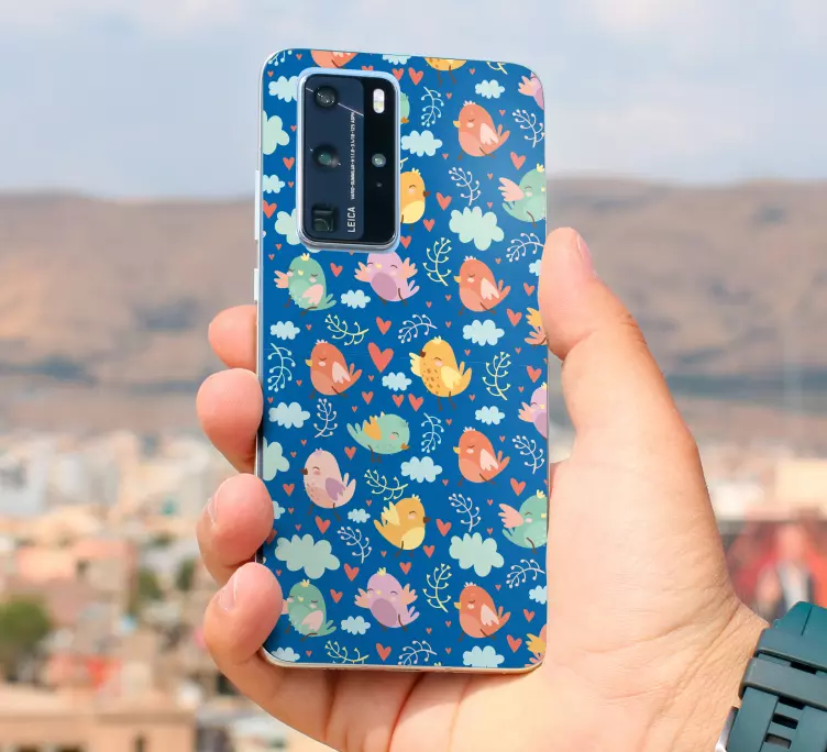 Introducing the Huawei sticker lively bird design, a delightful and colorful representation of playful birds soaring through a whimsical sky filled with hearts and clouds! This enchanting cartoon design brings joy and vibrancy to any phone, making it a fantastic choice for those who cherish a cheerful aesthetic.