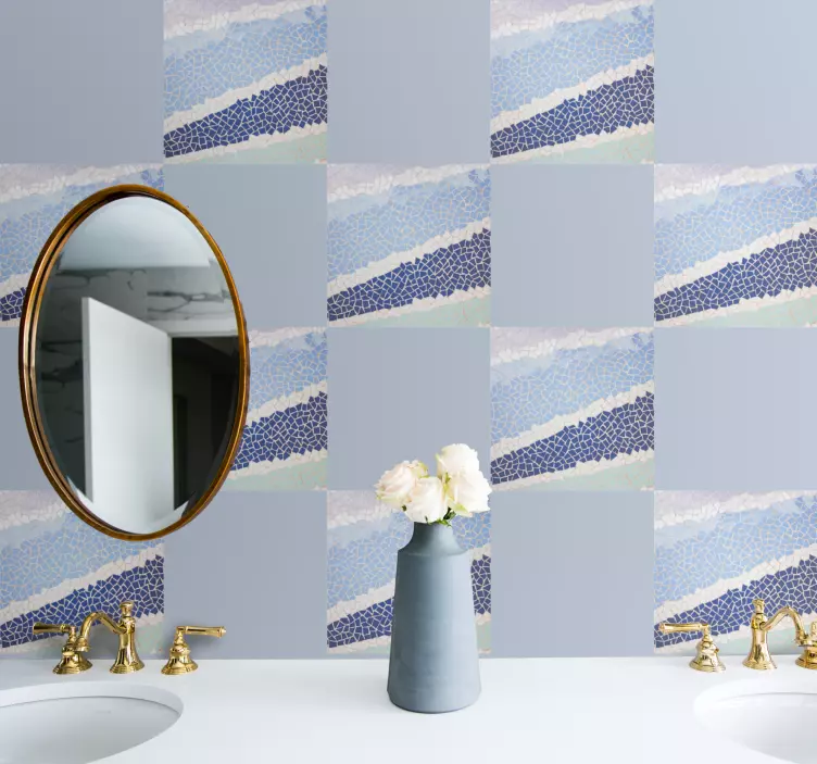 Transform your space with our stunning Location wall sticker abstract patterned mosaic. This design features a captivating blend of blue tones and textured geometric shapes, reminiscent of intricate mosaic tiles. The dynamic waves created by the abstract patterns bring a lively yet serene ambiance to any interior style. Perfect for those looking to elevate their decor!