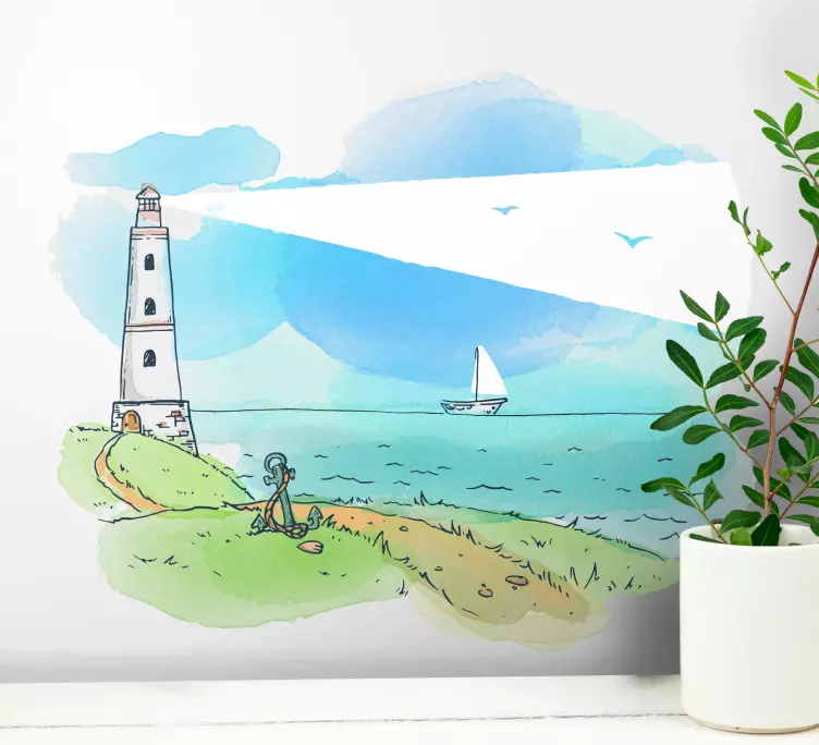 Transform your space with our stunning Location wall sticker coastal lighthouse scene. This beautifully crafted design features a captivating lighthouse set against a serene seaside landscape, where the ocean meets the horizon. The intricate illustration captures the essence of nature, sailing, and adventure, inviting the beauty of the coast into your home. A perfect addition to any room, this wall sticker brings tranquility and charm to your decor.