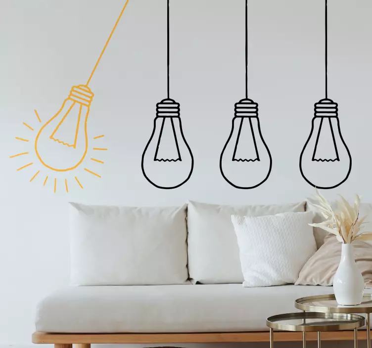 Illuminate your space with our stunning Location wall sticker hanging light bulbs. Featuring a unique design that combines a detailed drawing of lightbulbs with a minimalist and Nordic aesthetic, this illustration is perfect for adding a touch of charm to any home style. The outline of the light bulbs creates an inviting atmosphere, making it an ideal choice for your interior decor!