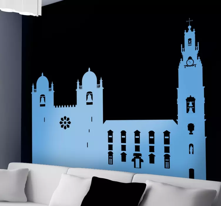 Transform your living space with our stunning Location wall sticker historical building silhouette, featuring an intricate design that captures the essence of Portugal's architectural heritage. This beautiful silhouette showcases a magnificent cathedral and other historic structures, making it a perfect representation of a landmark that defines the city’s skyline. The artistic portrayal of this historic architecture will inspire admiration and conversation among your guests!