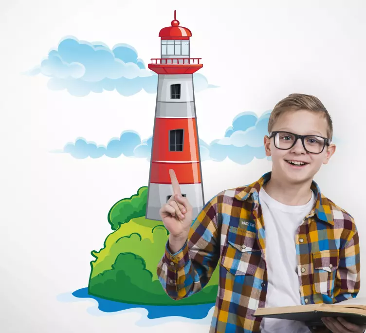 Transform your space with our stunning Location wall sticker lighthouse on island. This beautiful design features a picturesque lighthouse standing tall on a serene island, surrounded by the calming sea, fluffy clouds, and vibrant nature. The nautical and marine illustration brings a touch of adventure and tranquility to any room, making it a perfect addition for those who love the ocean and its beauty!