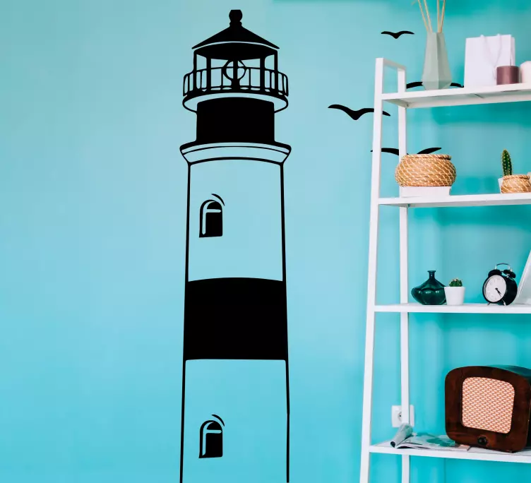 Transform your space with our stunning Location wall sticker lighthouse silhouette, featuring a beautifully crafted lighthouse, soaring birds, and an enchanting nautical theme. This coastal-inspired home decor piece adds a touch of serenity and adventure to any room, creating a calming atmosphere that invites the spirit of the sea into your home!