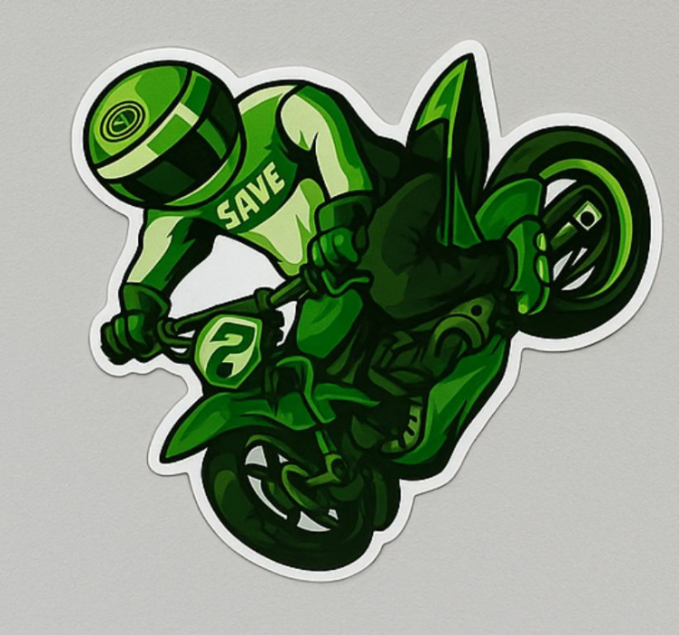 The Motorbike sticker green rider spray motorbike sticker is more than just a decoration; it’s a statement of passion and individuality! Adding this sticker to your bike transforms it into a unique masterpiece, showcasing your personality and love for the open road. Imagine cruising down the highway with this vibrant design enhancing your ride, inspiring not just you but also everyone who sees it!