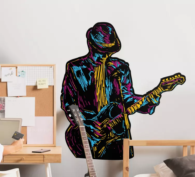Musical wall sticker colorful guitarist silhouette