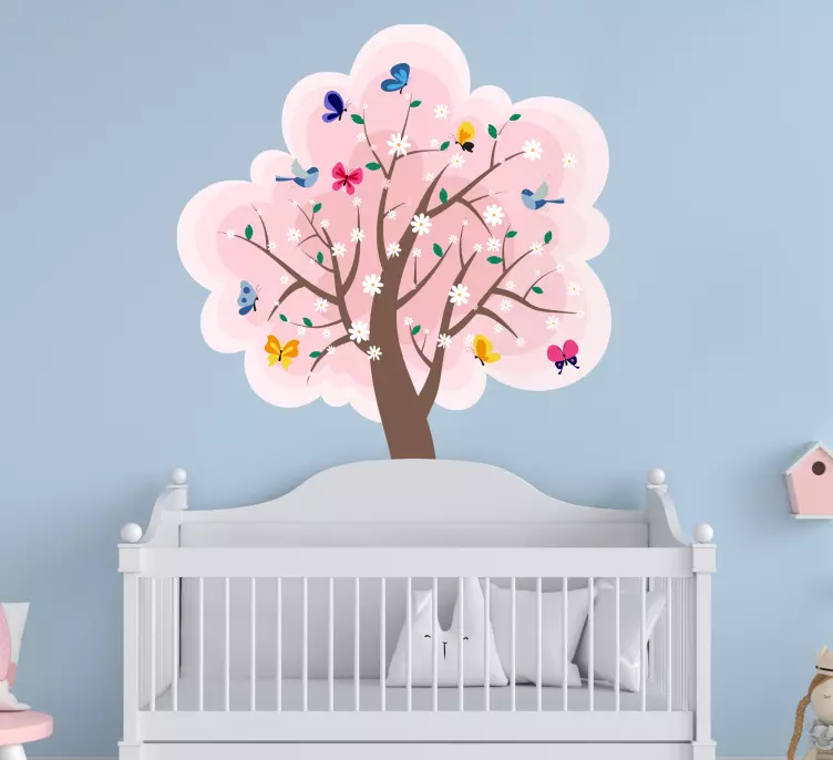 Transform your living space with our stunning Nature wall sticker blooming tree scene. This vibrant design features a beautiful tree adorned with delightful flowers and fluttering butterflies, creating a picturesque illustration that captures the essence of nature in spring. The colourful palette, dominated by soft pinks and lively hues, breathes life into any room, making it feel fresh and inviting!