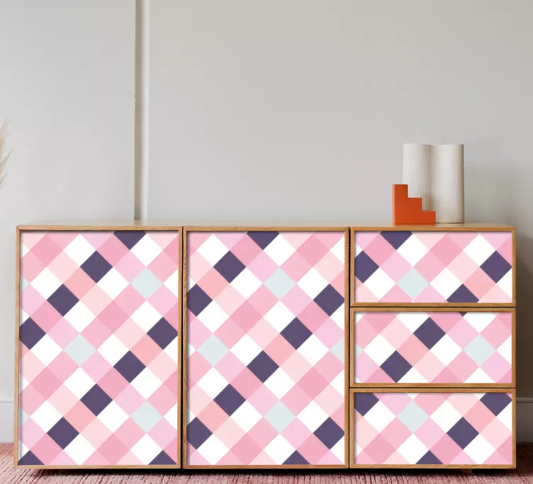 Introducing our Object sticker pink patterned surface, a stunning design that features a vibrant checkered pattern, creating a modern geometric texture that’s perfect for enhancing your home decor. This colorful sticker is ideal for furniture and drawers, bringing a fresh and contemporary look to any space!