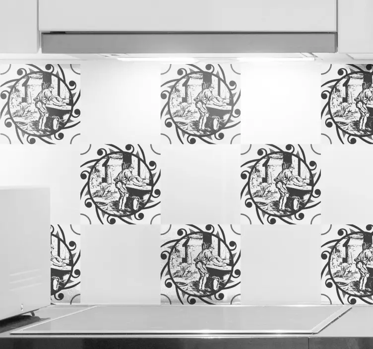 Introducing our stunning Object sticker vintage craft scene, a captivating design that beautifully blends baking themes with an artistic representation of a person and tile engravings. The black and white palette enhances its abstract qualities, making it a striking addition to any space. This unique sticker is perfect for those who appreciate the fusion of craft and artistic expression!