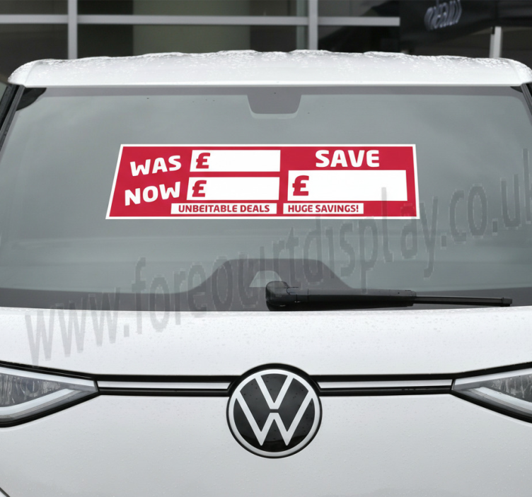 Reference: A54695Introducing our stunning Red car sales signs car decal that features a vibrant design, bringing life and color to your car sales environment! This eye-catching decal is crafted with a satin finish that eliminates reflections while enhancing color intensity. With a built-in adhesive, it ensures easy application on any flat surface and boasts a remarkable durability of 8-10 years. The Red car sales signs car decal is not only resistant and washable but also customizable, giving you the flexibility to choose the dimensions that fit your needs perfectly!
