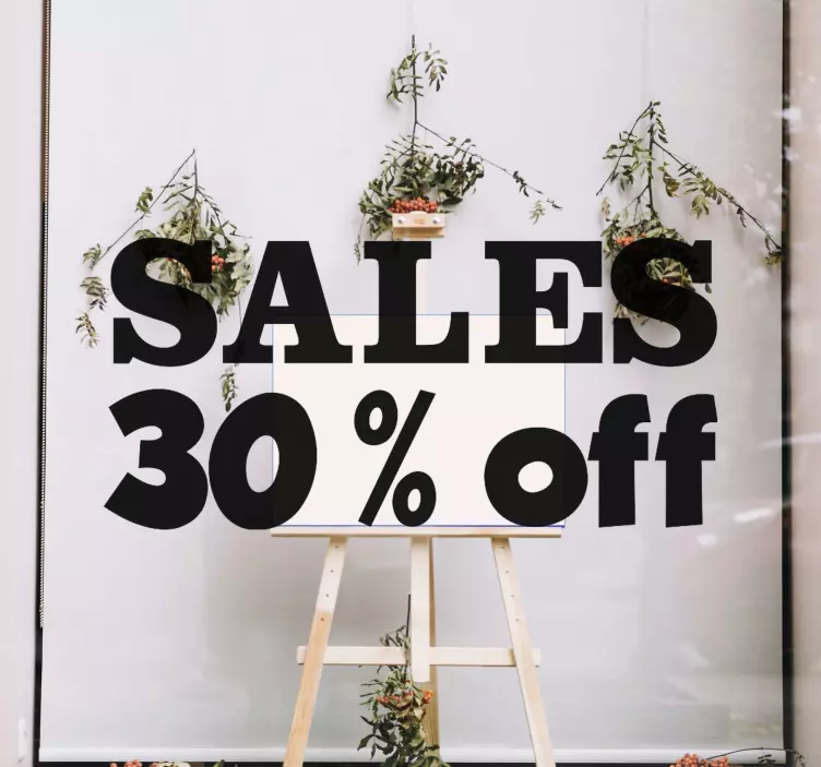 Applying the Sales sticker 30% discount sales sticker is a breeze! Simply peel off the backing and place the sticker on any flat surface. For best results, ensure the surface is clean and dry before application.