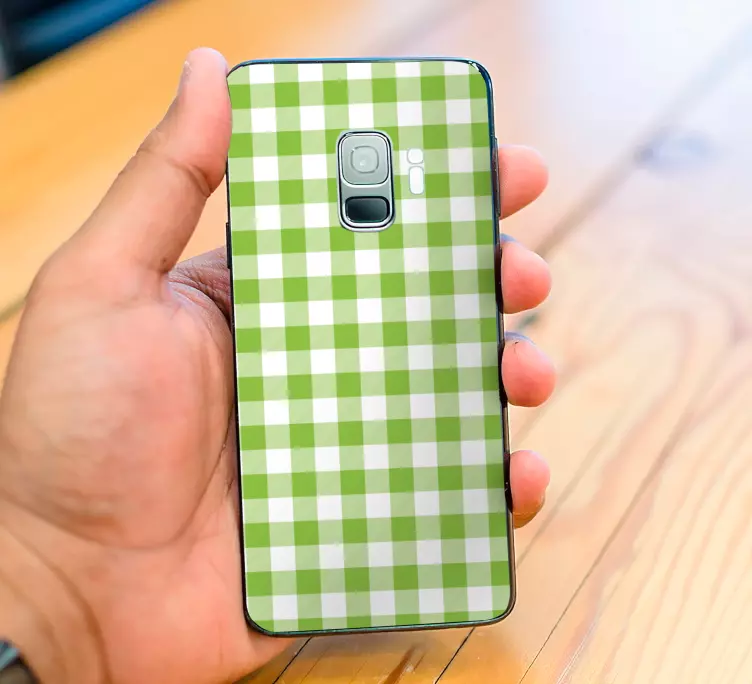 Applying our Samsung stickers green checked pattern Samsung stickers is a breeze! Simply clean the surface of your phone, peel off the backing, and stick it on. Smooth out any bubbles with your fingers for a flawless finish!