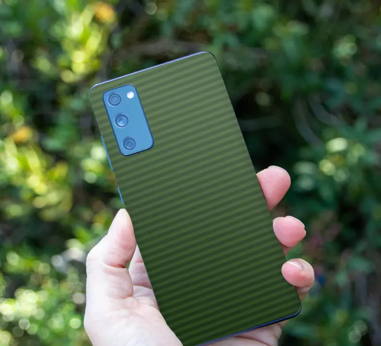 Applying our Samsung stickers green striped wrap Samsung stickers is a breeze! Just clean the surface of your phone, peel off the backing, and smoothly apply the sticker. It's that simple!