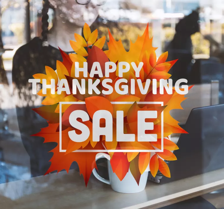 Our Thanksgiving Sale Leaf Window Decal is a beautiful wall tattoo suitable for every shop decoration. It will be perfect for catching the eye of customers passing by your shop and encouraging them to come in and browse your products.
