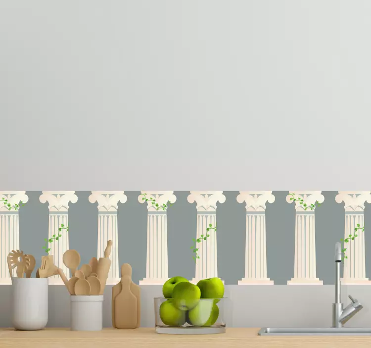 Transform your space with our Wall border sticker classic column design, a stunning blend of elegance and classical charm! This design features exquisite greek columns entwined with delicate vine motifs, perfect for enhancing your kitchen design or any interior style. Create a sophisticated ambiance that captivates the eye and adds a touch of class to your home!