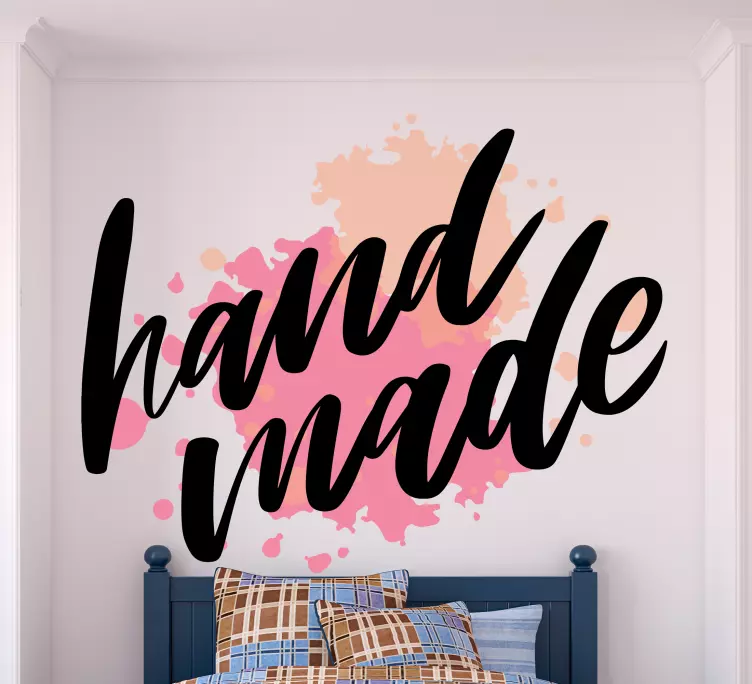 Reference: A48562This design features a stylish calligraphy quote emphasizing the concept of handmade craftsmanship. The vibrant splashes of color in the background add a lively touch, making it an inspiring addition to any space, encouraging creativity and appreciation for artisanal work.
