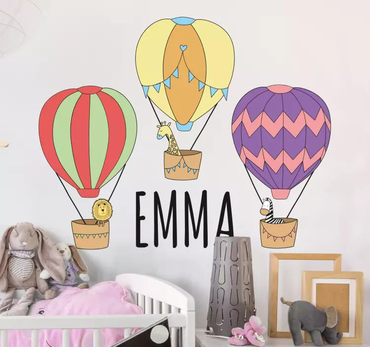 Transform your child's room into a world of fun and adventure with our stunning Wall stickers for kids lively hot air balloons. Each design features vibrant hot air balloons soaring high in the sky, accompanied by delightful animals. You can even add a custom name to make this artwork truly unique! These customizable illustrations will brighten up any kids room and inspire dreams of amazing journeys. Let your child's imagination take flight!