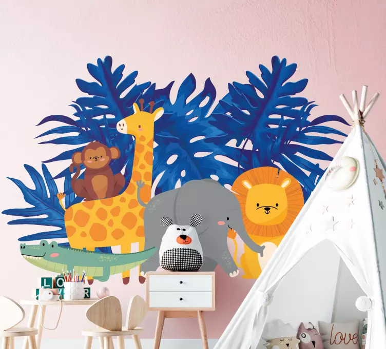 Transform your child's room with our vibrant Wall stickers for kids playful animal jungle! This delightful design features a whimsical jungle scene filled with adorable animals like a cheeky monkey, a tall giraffe, a friendly elephant, a roaring lion, and a playful crocodile, all surrounded by lush, colorful leaves. The combination of wild and cute elements creates a fun and engaging atmosphere that your little ones will absolutely love!