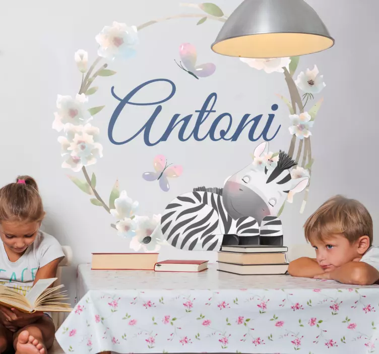 Bring a touch of whimsy into your child's room with our Wall stickers for kids zebra floral design. This delightful design features a playful zebra surrounded by charming flowers, creating a vibrant and inviting atmosphere. Each sticker is customizable, allowing you to add your child's name in beautiful calligraphy within a lovely wreath. The combination of cute animals and floral patterns creates a playful environment that inspires creativity and joy!