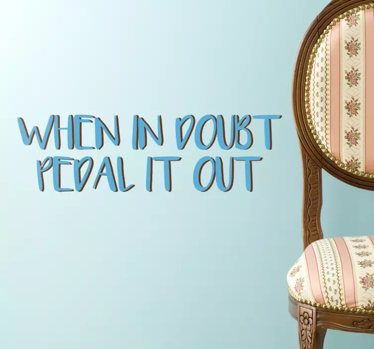 Applying the When in doubt pedal out wall quote decal wall quote decal is a breeze! Simply choose a flat surface, peel off the backing, and stick it on for an instant transformation. You can even customize the measurements to fit your unique space!