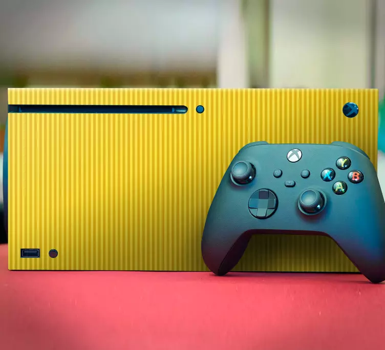 Transform your gaming experience with our Xbox wrap lively gaming sleeve, featuring an eye-catching design that celebrates the world of video games. The vibrant yellow hues and dynamic stripes perfectly complement your console and controller, creating an exciting atmosphere for every gaming session!