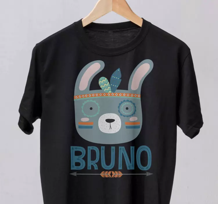 Reference: T4967This charming design features an adorable bunny face with decorative elements like a feather and colorful markings. The name 'Bruno' adds a personalized touch, making it a delightful choice for kids. Its playful colors and whimsical character appeal to a younger audience.