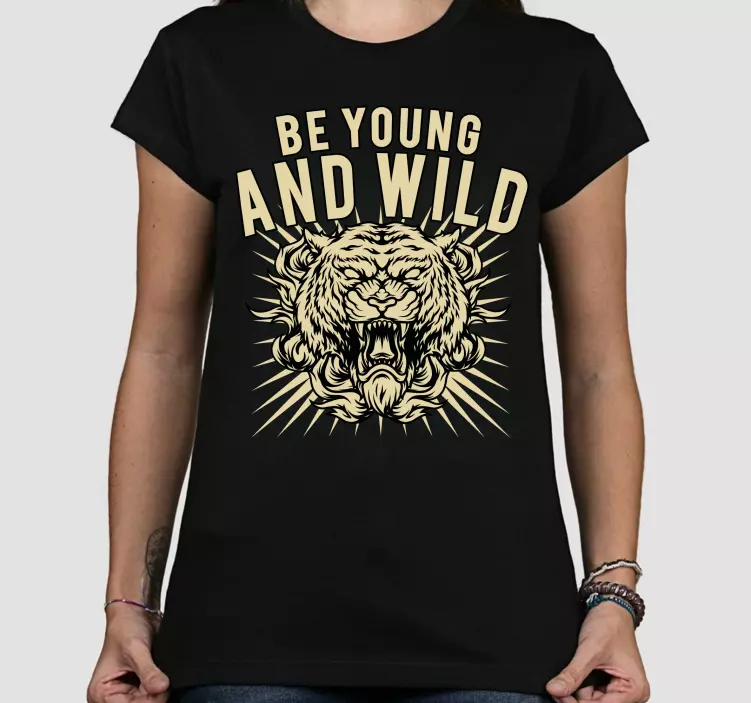Reference: T4848This design features a powerful lion head with bold typography showcasing the phrase 'Be Young and Wild'. The fierce expression of the lion conveys a sense of strength and adventure, making it a striking choice for individuals looking to express their wild side.