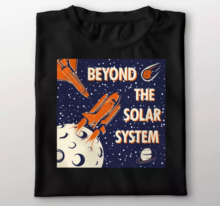 Reference: T4800This design features a captivating adventure in space, showcasing a rocket soaring past planets and a moon. The vibrant colors and bold typography invite exploration and curiosity about the cosmos, making it an appealing choice for anyone fascinated by space travel.