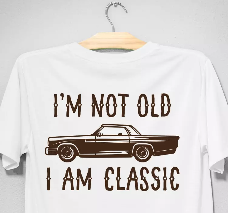 Reference: T4519This design features a vintage car alongside the playful text, emphasizing a humorous statement about aging. It perfectly captures a nostalgic vibe while appealing to family dynamics, making it ideal for father-son bonding moments.