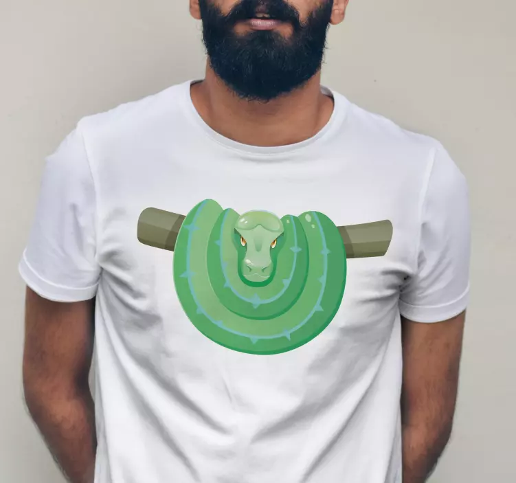 Introducing our stunning Green snakelike design t-shirt, featuring a captivating illustration of a snake intertwined with a branch. This unique cartoon design showcases vibrant shades of green, making it a stylish addition to any casual outfit. Embrace your individuality with this one-of-a-kind t-shirt that stands out in a crowd!