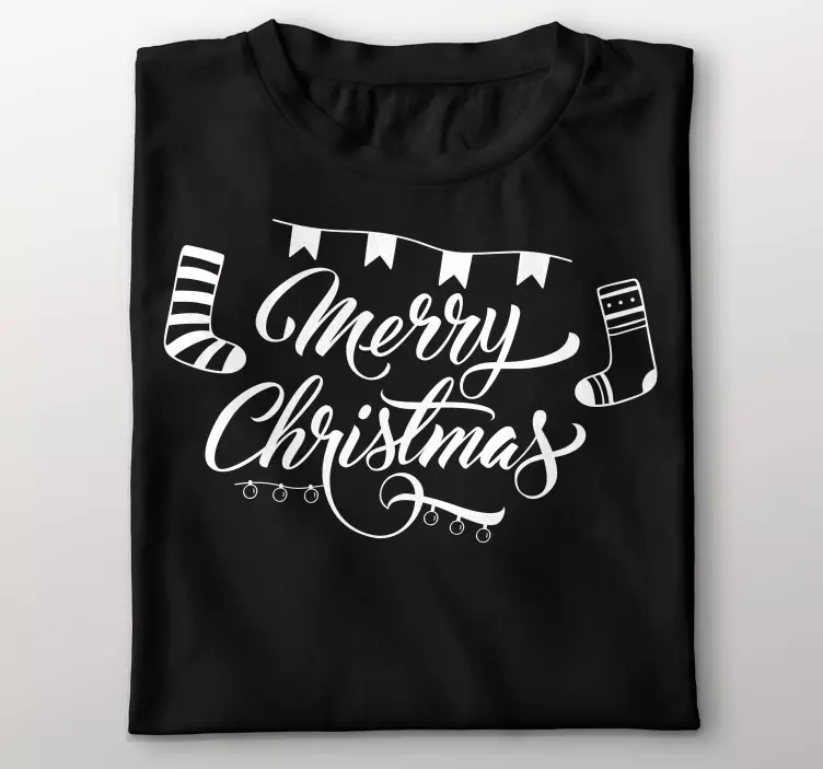 Reference: T4656This striking design features the phrase 'Merry Christmas' in elegant lettering, accompanied by festive patterns like stockings and decorative elements, embodying the spirit of celebration during the holiday season.